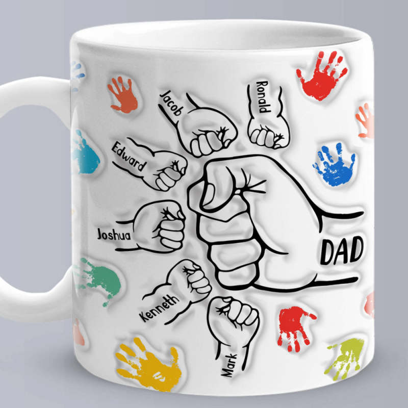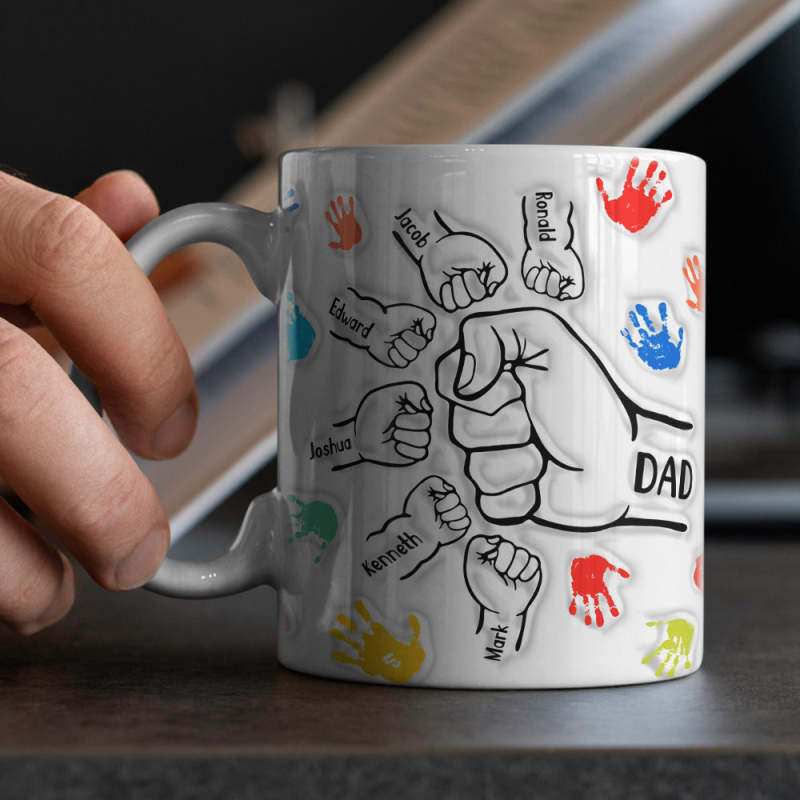 Mostra il tuo amore e apprezzamento per il padre o il nonno con un design unico che scalda sia le mani che il cuore. Questa tazza presenta un'illustrazione toccante del pugno, un sentito tributo al caro legame tra i membri della famiglia.