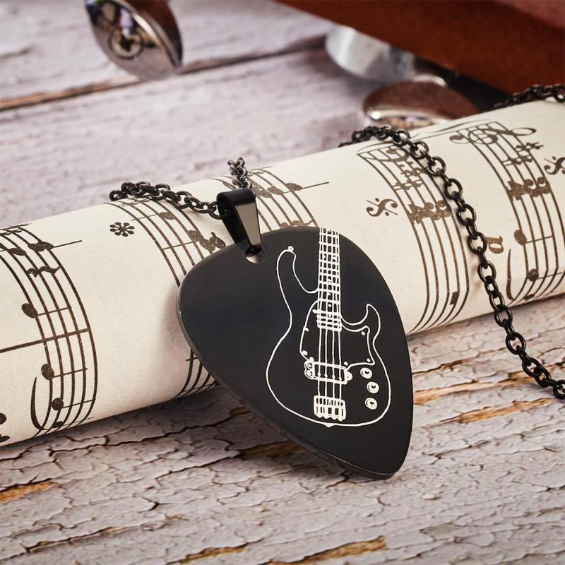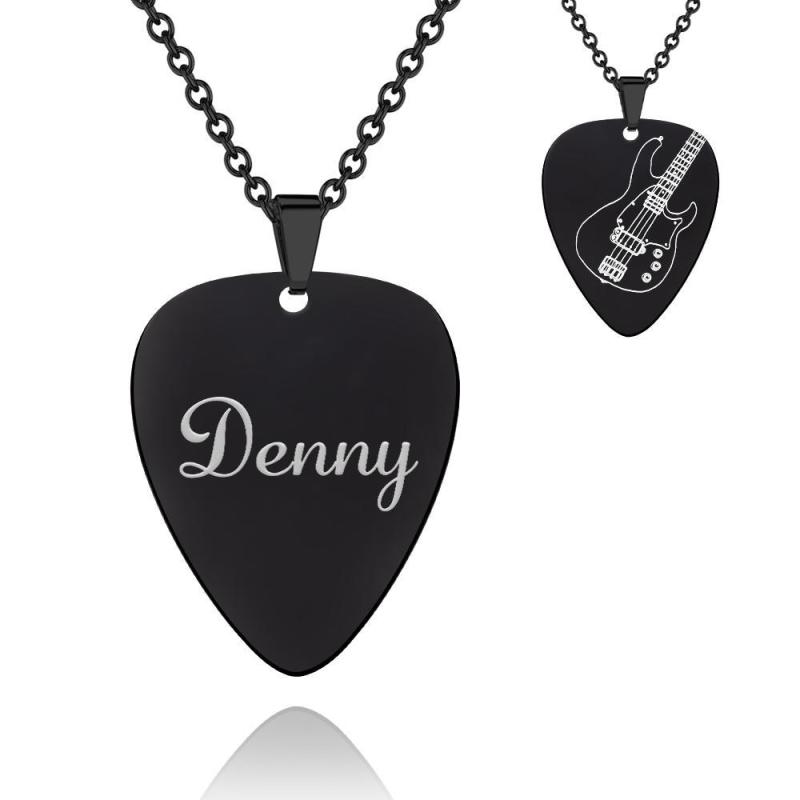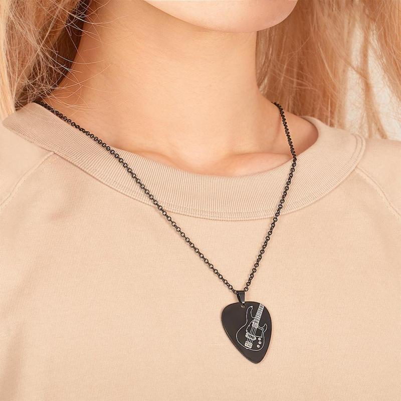 Collana personalizzata con ciondolo plettro per chitarra inciso nera