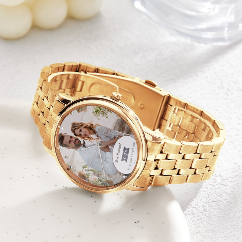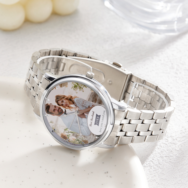 Orologio Personalizzato Con Foto Incisa, Braccialetto In Lega Nera, Orologio Con Foto, Regali Di San Valentino Per Lui