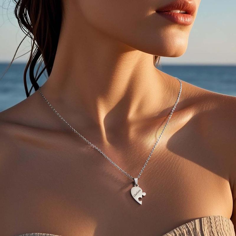 Questa collana personalizzata a forma di puzzle a forma di cuore è un simbolo significativo di amore, connessione e armonia.