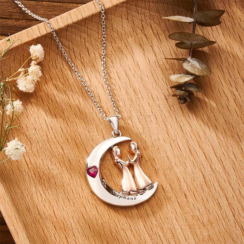 Collana Con Pietra Portafortuna Personalizzata Con Cuore Inciso, Gioielli Per Ragazze Dolci Con Luna Per Gli Amici