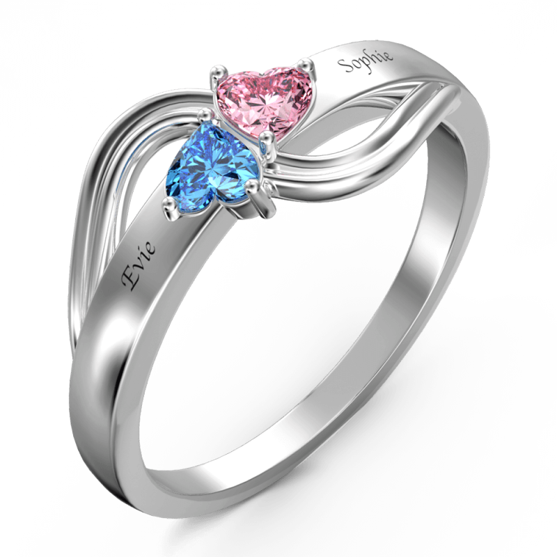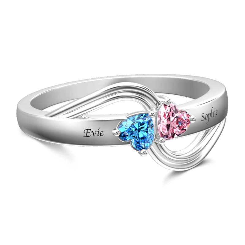 Anello Da Promessa Personalizzabile In Birthstone Con Incisione In Argento