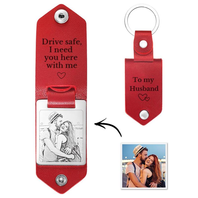 Portachiavi In ​​pelle Personalizzato Drive Safe, Portachiavi Con Foto Significativo, Regalo Di Anniversario Per Lui