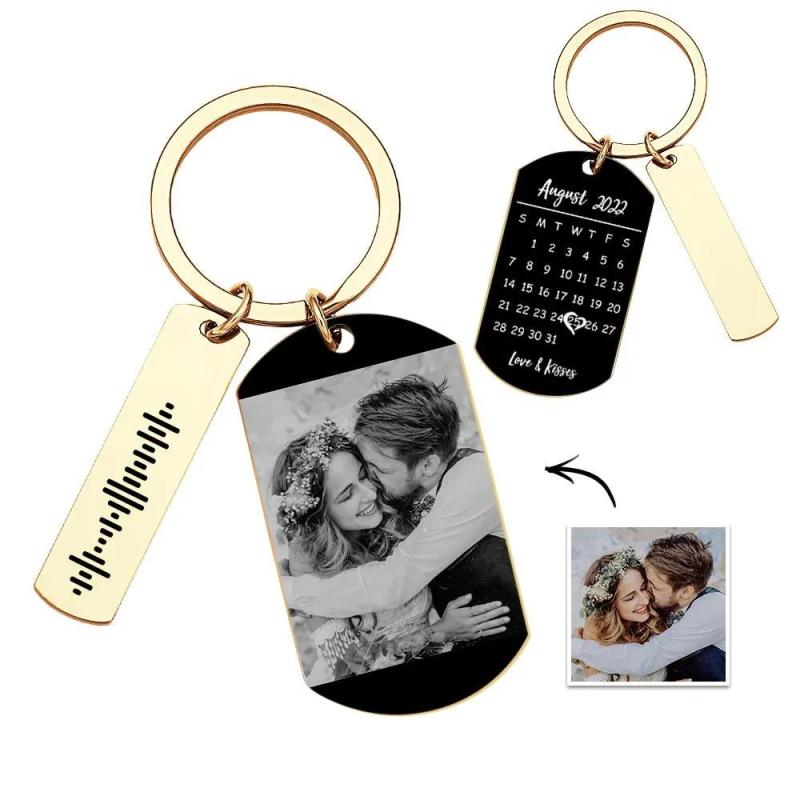 Portachiavi musicale personalizzato Immagine personalizzata e codice brano musicale Portachiavi con foto di coppia Regali per il fidanzato