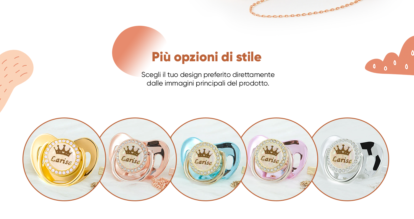 Rendi gli oggetti essenziali del tuo bambino sicuri, eleganti e indimenticabili con questo lussuoso ciuccio personalizzato!