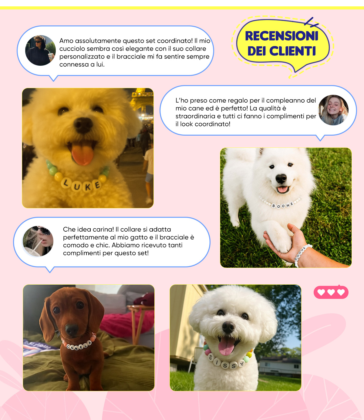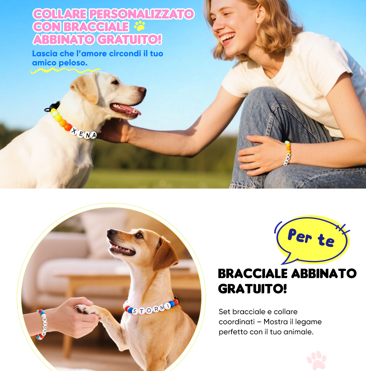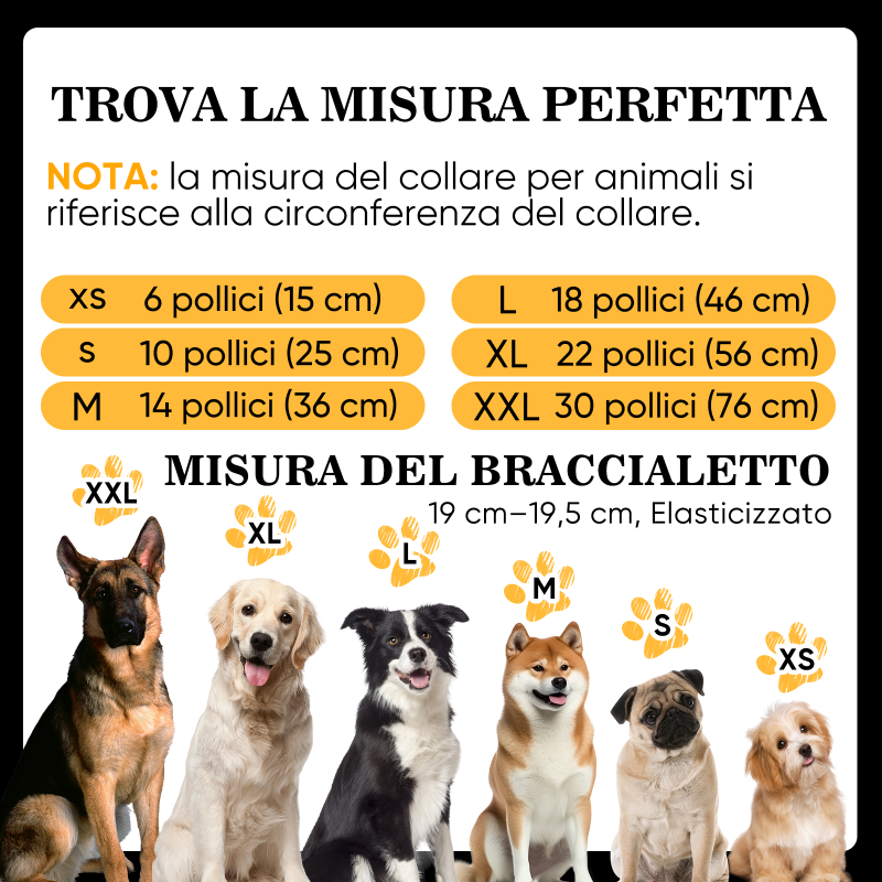 Il nostro bestseller collare personalizzato per animali include un braccialetto abbinato GRATIS solo per te – perché il vostro legame merita di risplendere.