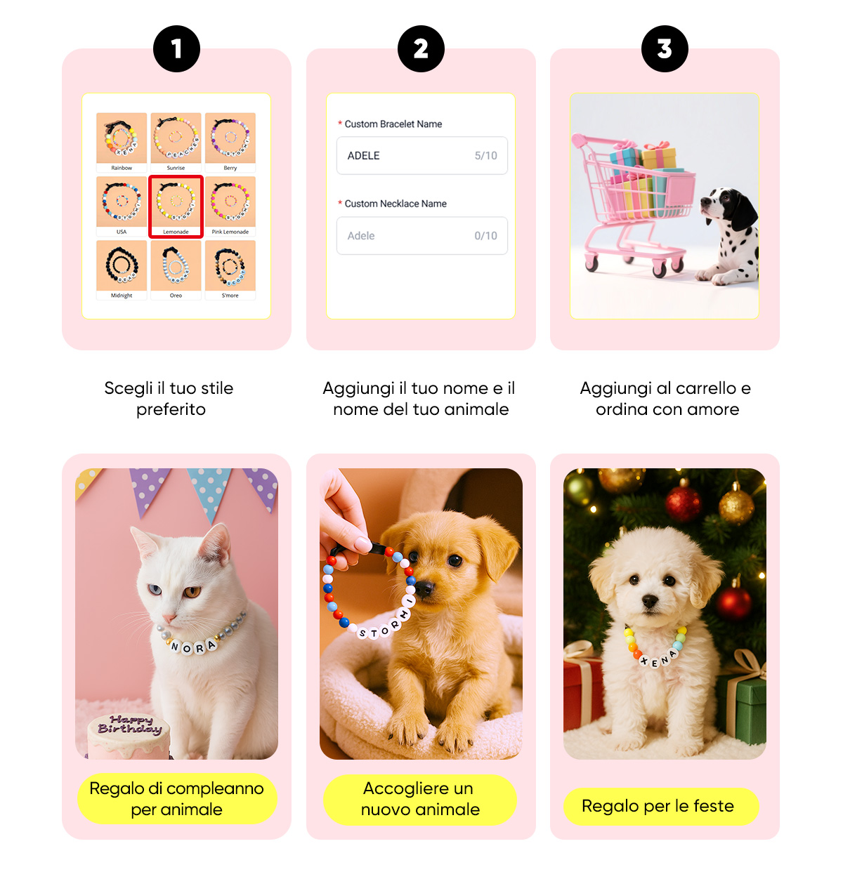 Perline personalizzate con il nome per il collare del tuo animale domestico