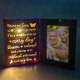Questa cornice portafoto personalizzata con luci è il regalo perfetto per il padre, la madre o la persona amata. Le splendide luci aggiungono un tocco meraviglioso a qualsiasi stanza, rendendola un regalo davvero speciale e unico nel suo genere. Custodisci i ricordi con questo regalo unico e premuroso.