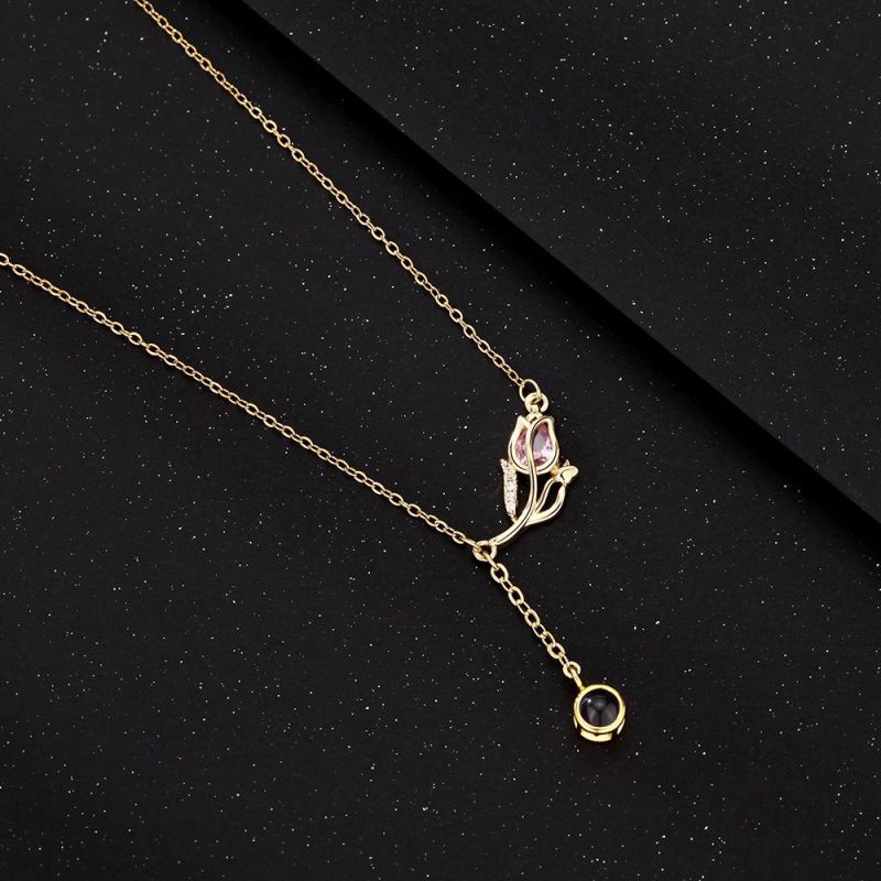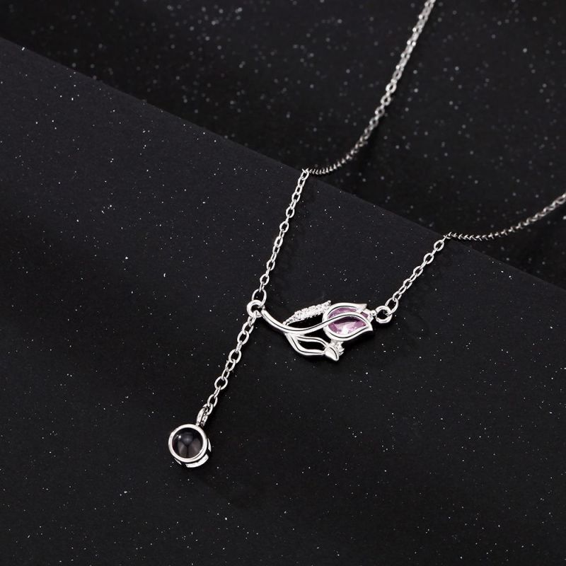 Collana con proiezione fotografica personalizzata e gemma a tulipano: una collana personalizzata per tutto ciò che ami nella vita. Ogni collana è realizzata su ordinazione ed è stata progettata e realizzata a mano da abili artigiani.