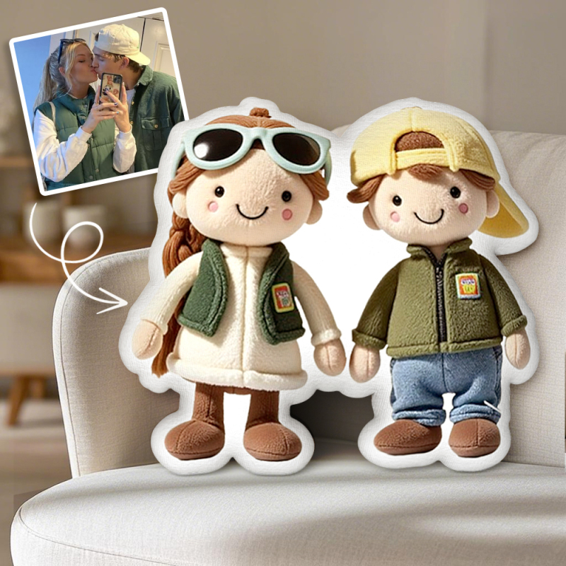 Cattura i tuoi momenti preferiti nel modo più carino possibile con questi cuscini di peluche Mini Me personalizzati! Questi adorabili e morbidi cuscini sono progettati per sembrare una versione in miniatura di te o dei tuoi cari. Perfetti per coppie, amici o famiglia, sono realizzati con dettagli raffinati per abbinarsi alla tua foto, rendendoli un ricordo sincero e unico.