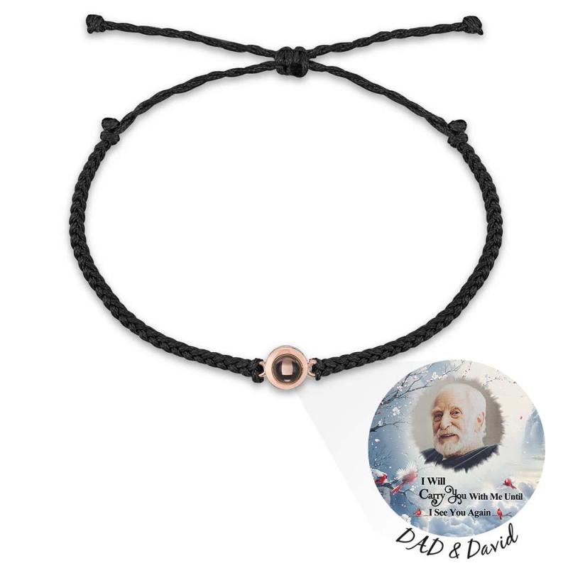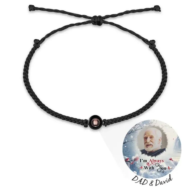 Bracciale Personalizzato Per Proiezione Fotografica Bracciale Intrecciato In Corda Nera Circolare, Regalo Commemorativo Per La Festa Del Papà