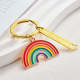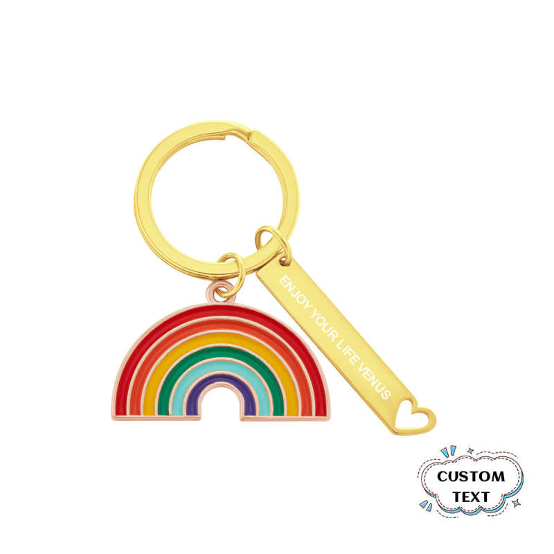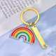 Questo semplice ed elegante portachiavi arcobaleno dorato sarebbe il regalo perfetto per qualsiasi persona vivace. È il modo perfetto per rallegrare una giornata. Questo abbagliante accessorio di moda arcobaleno può essere utilizzato come portachiavi, ciondolo per borsetta o ciondolo scintillante per zaino.