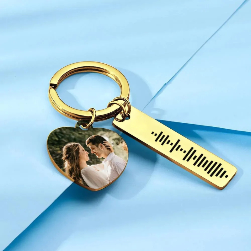 Portachiavi con codice musicale scansionabile personalizzato Immagine personalizzata e codice canzone musicale Cuore Coppie Foto Portachiavi Regali per fidanzato