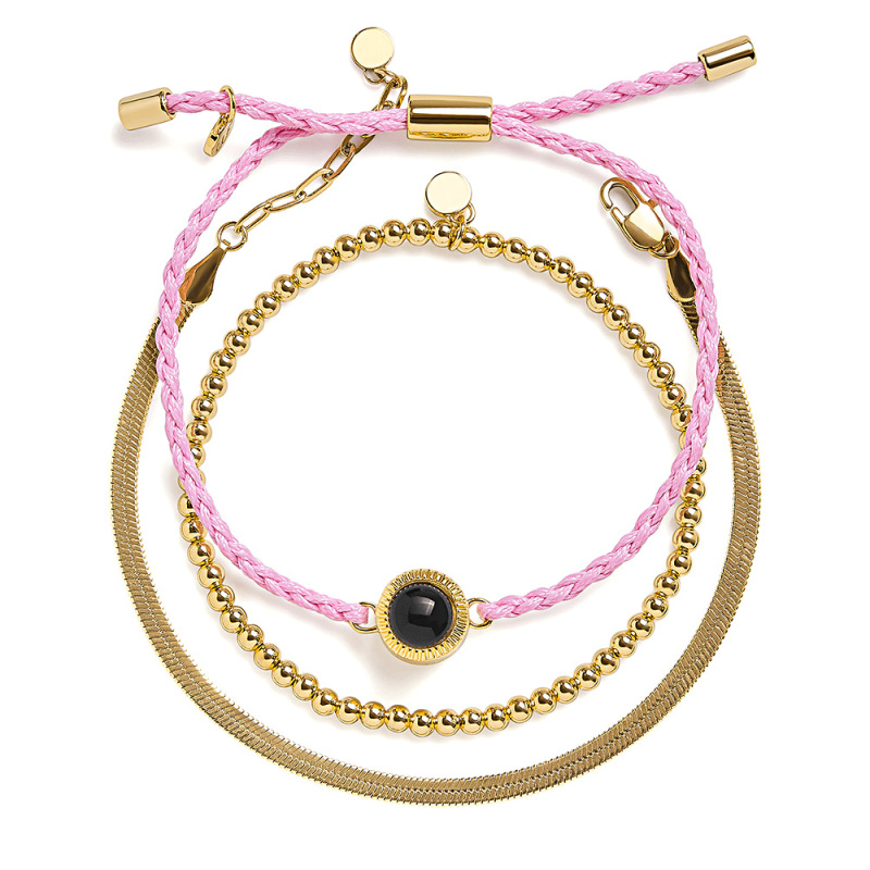 Stack Photo Bracelet Pack - Esalta il tuo stile con il nostro Stack Photo Bracelet Pack, che comprende un braccialetto fotografico personalizzato con cordino, un braccialetto elastico con perline e un braccialetto con catena a serpente. Questo trio unico unisce un design personalizzato a una versatilità alla moda.