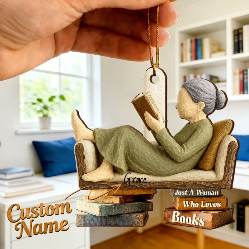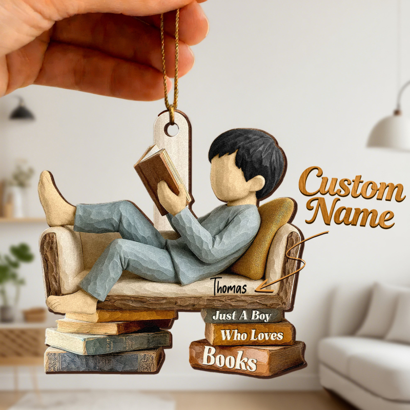 Celebra la gioia silenziosa della lettura e il calore dei momenti personali. Decorazione in legno personalizzata. Caratterizzata da una splendida incisione raffigurante un lettore rilassato su un comodo divano, questa decorazione cattura il cuore di ogni amante dei libri. Personalizzala con un nome per creare un grazioso ricordo che riflette passione, pace e amore per le storie. Perfetta come regalo di Natale o come decorazione per tutto l'anno per i bibliofili, porta un tocco di magia letteraria a qualsiasi albero o scaffale.