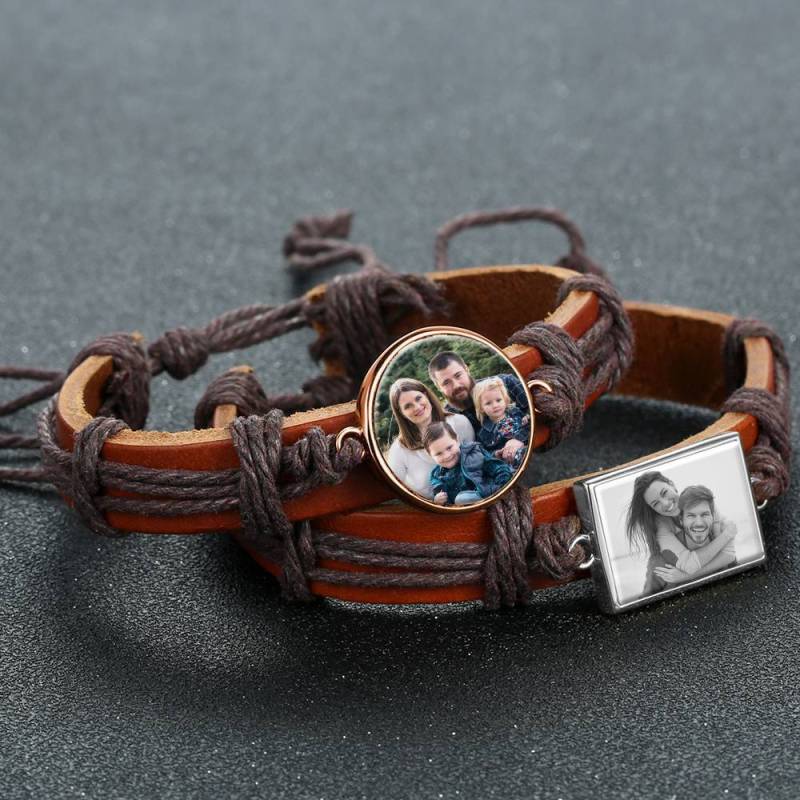 Ci sono alcune immagini o persone che ti fanno sentire caldo e diffuso dentro? In tal caso, i nostri braccialetti fotografici incisi sono un must per te. Soufeel offre una vasta gamma di braccialetti con ciondoli per foto che puoi personalizzare con le foto che scegli. Fai scorrere le immagini dei tuoi figli, del tuo partner, dei tuoi animali domestici o di qualsiasi altra cosa tu voglia vedere. Ci sono diversi bracciali tra cui scegliere, come bracciali in pelle e bracciali in metallo semplice. Alla ricerca di un regalo perfetto per una persona cara? Quindi questo bracciale in pelle è la risposta. Prendi uno e guarda il tuo cuore sciogliersi! Bracciale con foto, unico regalo in pelle marrone forma quadrata placcato in oro rosa - colorato.