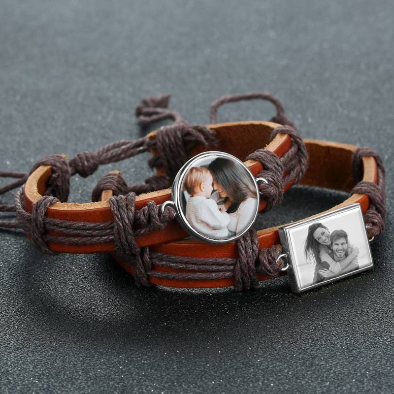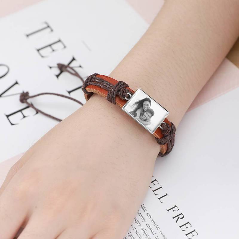 Ci sono alcune immagini o persone che ti fanno sentire caldo e diffuso dentro? In tal caso, i nostri braccialetti fotografici incisi sono un must per te. Soufeel offre una vasta gamma di braccialetti con ciondoli per foto che puoi personalizzare con le foto che scegli. Fai scorrere le immagini dei tuoi figli, del tuo partner, dei tuoi animali domestici o di qualsiasi altra cosa tu voglia vedere. Ci sono diversi bracciali tra cui scegliere, come bracciali in pelle e bracciali in metallo semplice. Alla ricerca di un regalo perfetto per una persona cara? Quindi questo bracciale in pelle è la risposta. Prendi uno e guarda il tuo cuore sciogliersi! Bracciale con foto, regalo unico di pelle marrone quadrata argento placcato platino - fotocopiato.