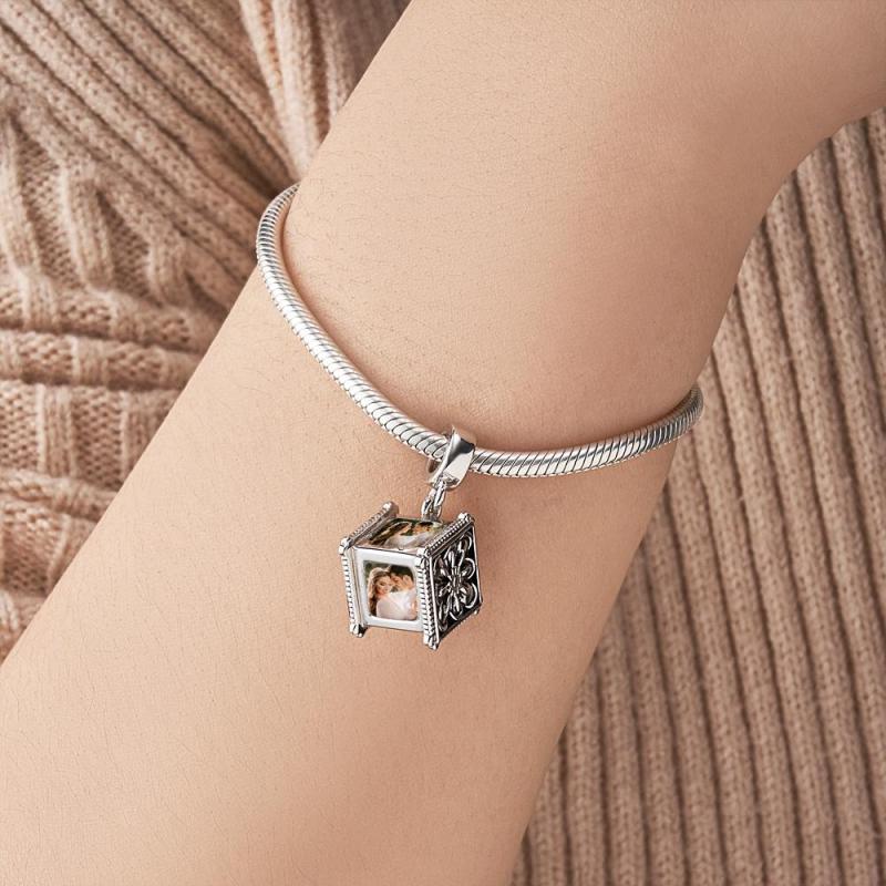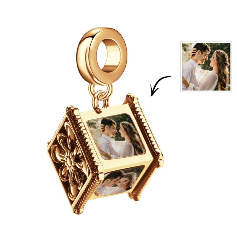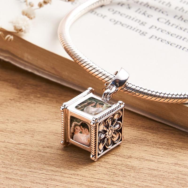 Ciondolo Con Foto Che Contiene 4 Immagini Personalizzate Su Quattro Lati Con Perline E Bracciale Con Catena A Forma Di Serpente, Regalo Ideale Per Sempre