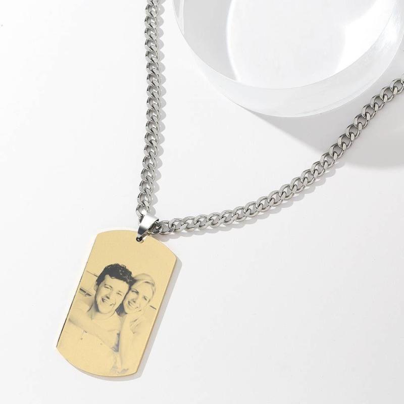 Uomo Foto Inciso Collana Tag Con Incisione Oro 18k Placcato In Acciaio Inossidabile