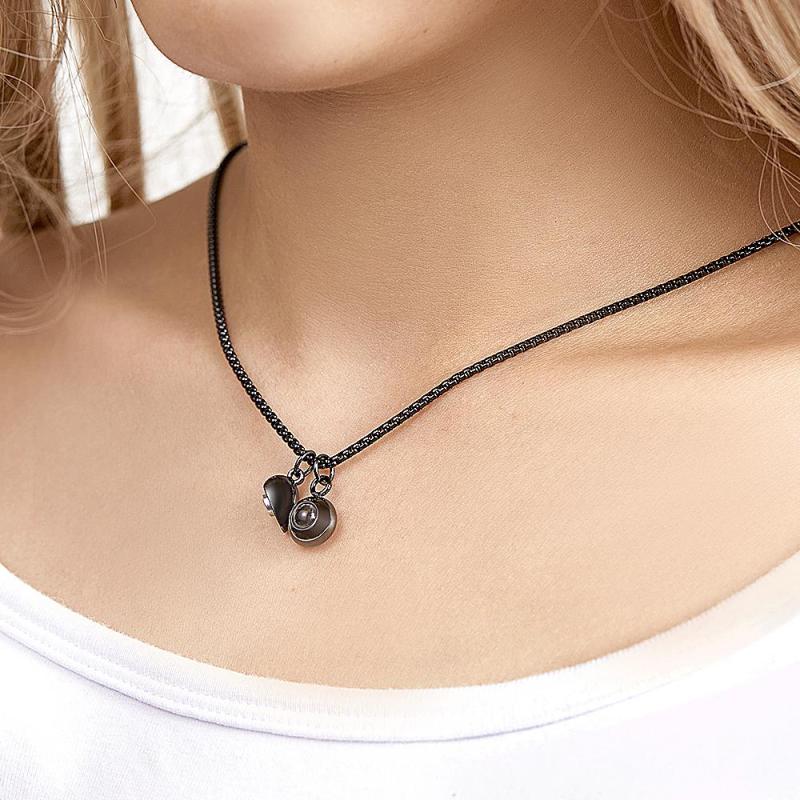 Dì a qualcuno di speciale quanto lo ami con questa elegante collana con proiezione di foto. Tieni semplicemente il ciondolo vicino a una fonte di luce e proietterà la foto. Un regalo perfetto per compleanni, anniversari, matrimoni, festa della mamma, San Valentino e Natale. Si consiglia di rimuovere la collana quando si è vicino all'acqua o in qualsiasi circostanza in cui la collana potrebbe sporcarsi di acqua o oli per il corpo.