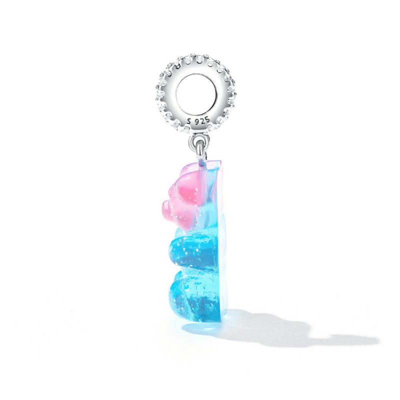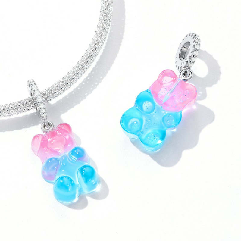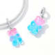 Charm Colgante Oso de Caramelo Rosa y Azul Plata