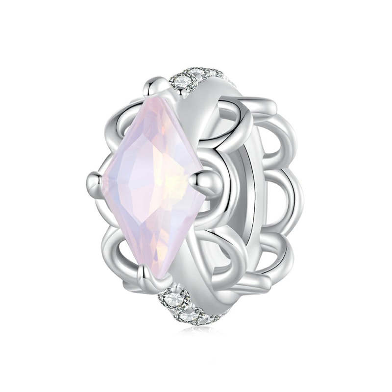 Dije de tapón de encaje rosa Dije espaciador Plata