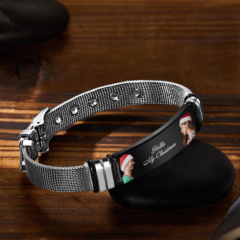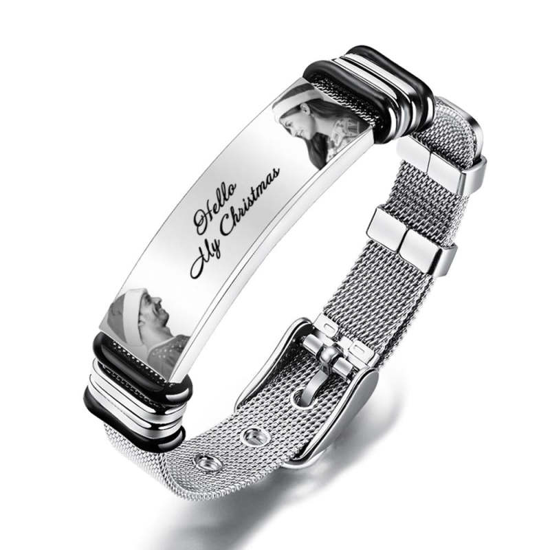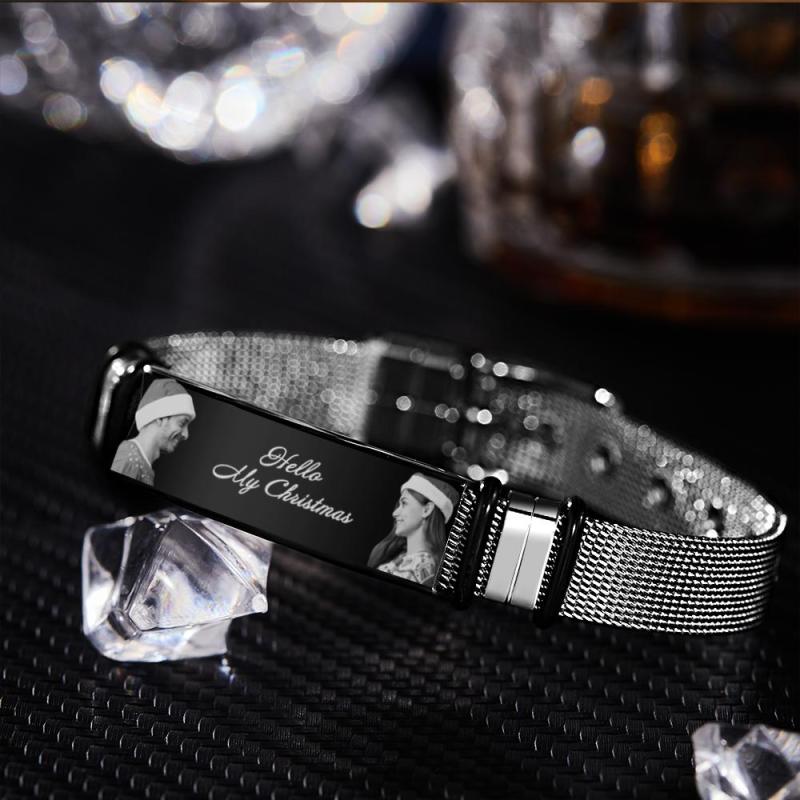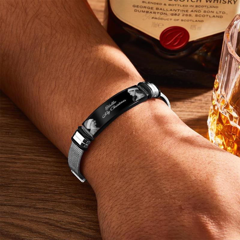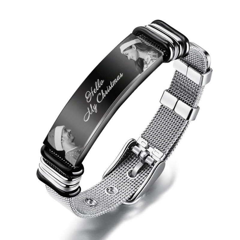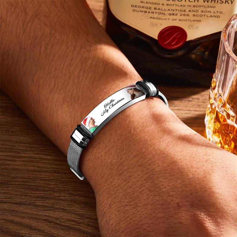Bracciale Uomo Personalizzato Con Doppia Foto E Parole Incise Regalo Di Natale Per I Tuoi Cari