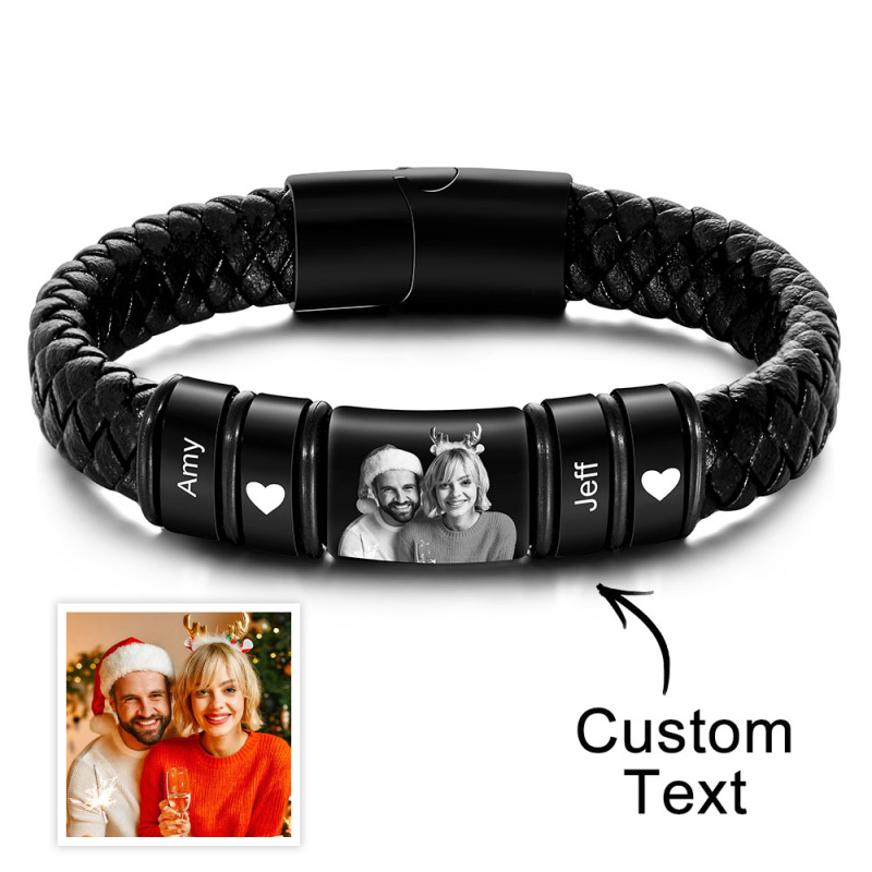 Bracciale In Pelle Con Foto Personalizzata Incisa, Regali Di Natale Da Uomo Per Lui