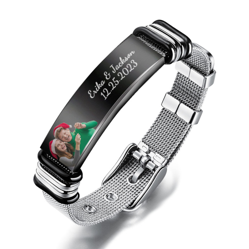 Bracciale Da Uomo In Acciaio Inossidabile Con Foto Personalizzata Incisa, Regalo Per Regali Di Natale