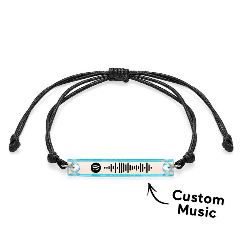 Braccialetto con codice musicale personalizzato: braccialetto acrilico regalo per lei. Questo braccialetto ha un aspetto semplice, con un piccolo marchio acrilico su di esso, puoi personalizzare il codice musicale su questo piccolo marchio acrilico. Dopo aver scansionato il codice con il tuo telefono, puoi goderti la tua canzone preferita.