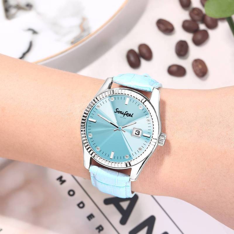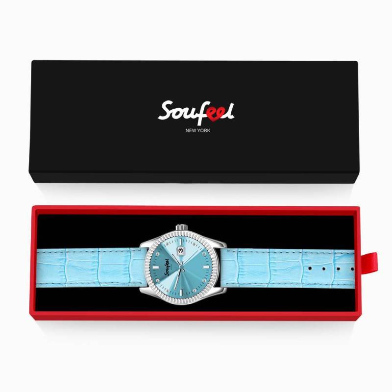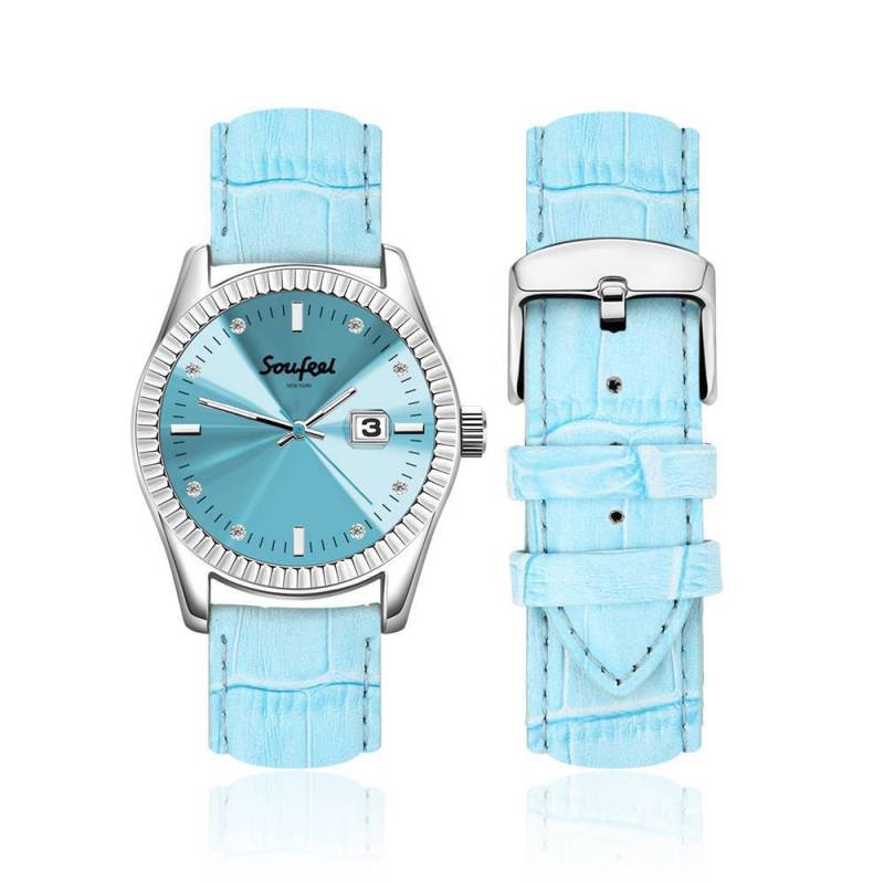 Orologio Da Donna In Cristallo cristallo Soufeel Cinturino In Pelle Azzurro 38,5 Mm