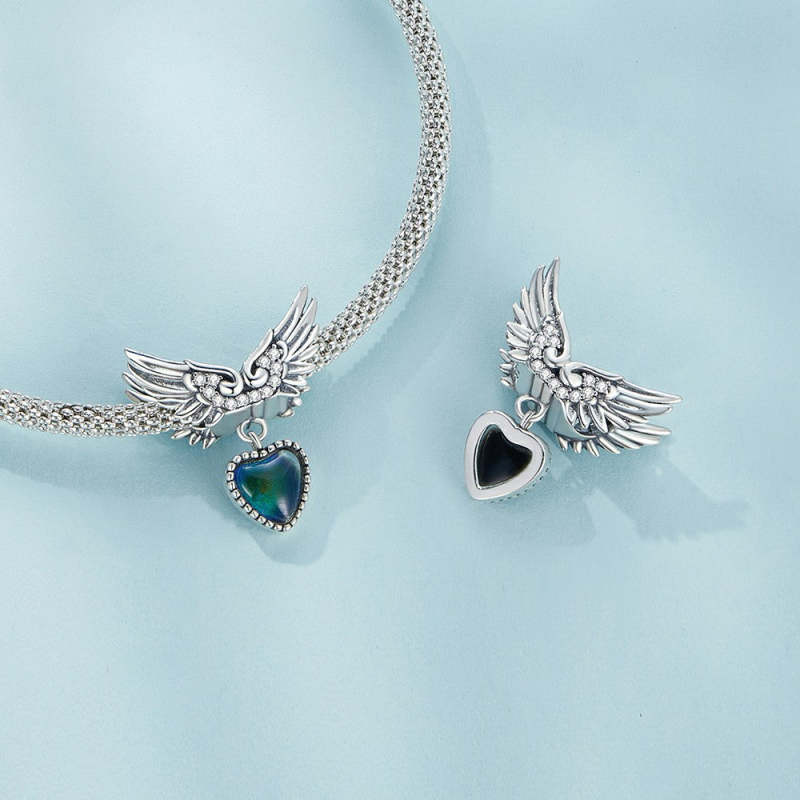 Ciondolo Ali Guardiane Con Scolorimento Della Temperatura, Argento