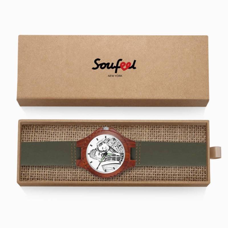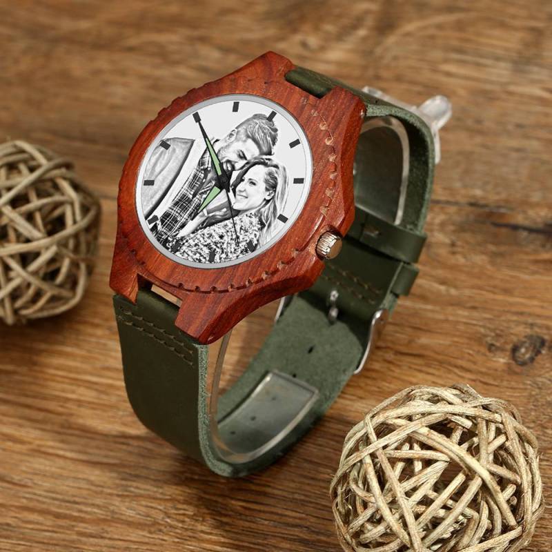 Foto Unisex Incisa Per Foto 48 Mm Di Grano Di Legno E Nastro Verde Scuro - Contorno