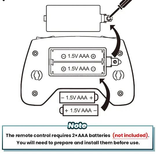 Nota: il telecomando richiede 2 batterie AAA (non incluse). Sarà necessario prepararli e installarli prima dell'uso.